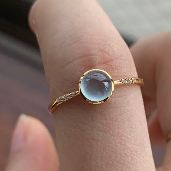 - 本翡翠指輪 リング 可愛い 高氷ヒスイ k18 ダイヤ 高級品 コレクション品 魔除け ミャンマー産 スカイブルー クリスタル種