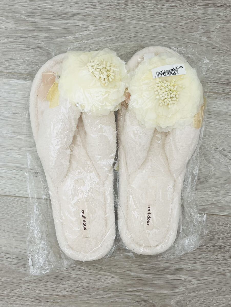 - 新品未使用 oeuf doux ウフ ドゥー ジェラートピケ gelato pique リボン フラワー シフォン ルーム シューズ ピンク スリッパ 1