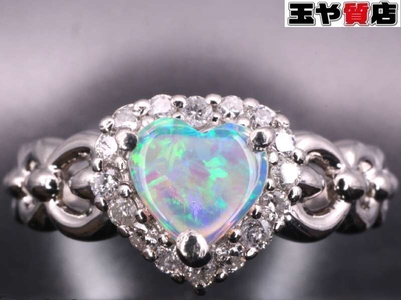 - オパール ダイヤ ハート デザイン リング13号 pt900 プラチナ