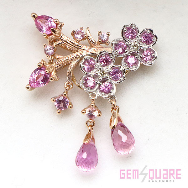 - 【値下げ交渉可】K18PG/WG ピンクサファイア ネックレストップ 花 枝 PS1.50 D0.02 3.4g ソーティング付 仕上げ済【質屋出店】