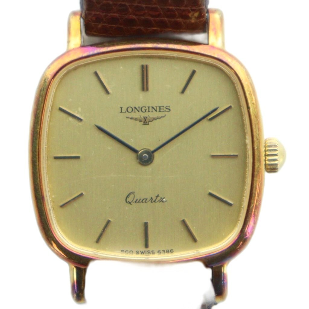 - ロンジン LONGINES ジャンク品 腕時計 ウォッチ クォーツ レザーベルト スクエア ゴールド色 ■GY11 /MQ レディース