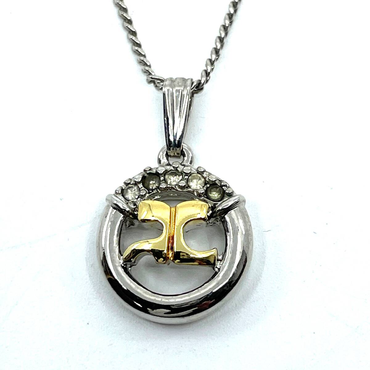 - Courreges クレージュ ネックレス ゴールド×シルバー コンビ ロゴ ラウンド ラインストーン 石 サークル ラウンド ラグジュアリー