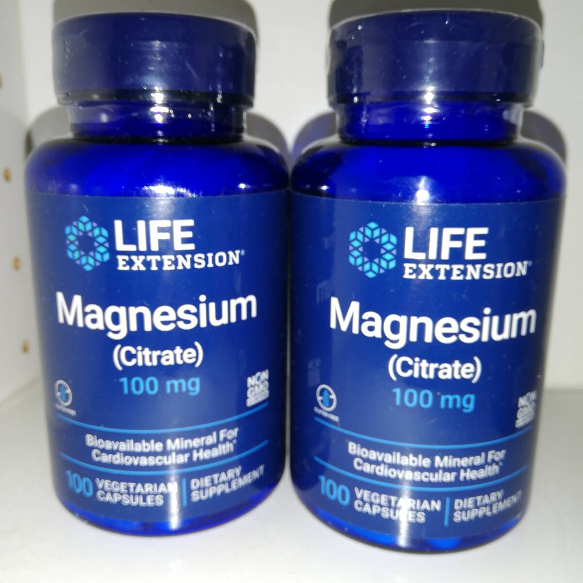 - 【2個セット】マグネシウム 100mg クエン酸マグネシウム キレートマグネシウム 100ベジカプセル Life Extension【新品・送料込】