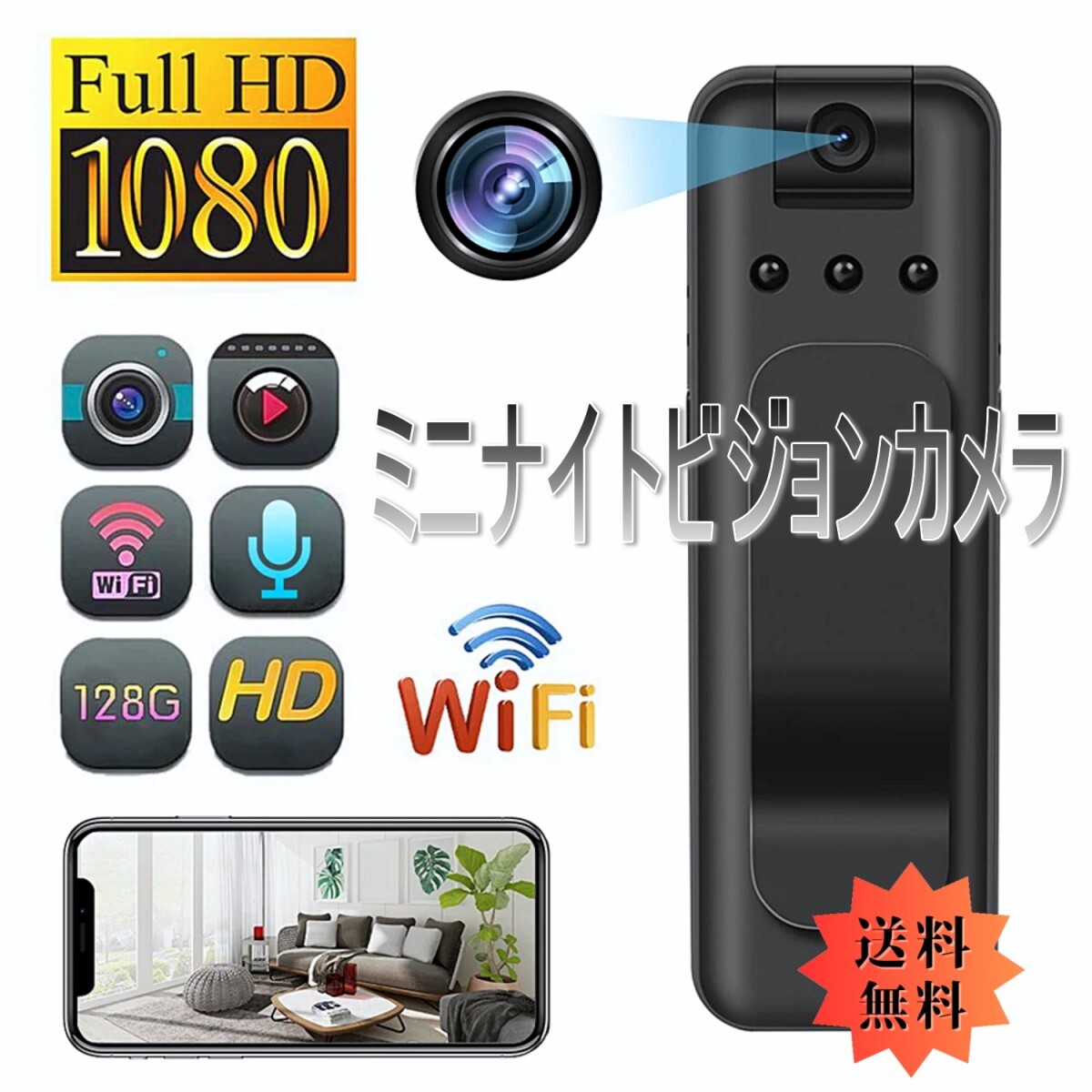 - 「送料無料」Wi-Fi ミニ ナイトビジョン カメラ,1080p HD,アクション, ボディーポータブル 防犯カメラ,ワンクリック, 5時間録画 DVR dvs