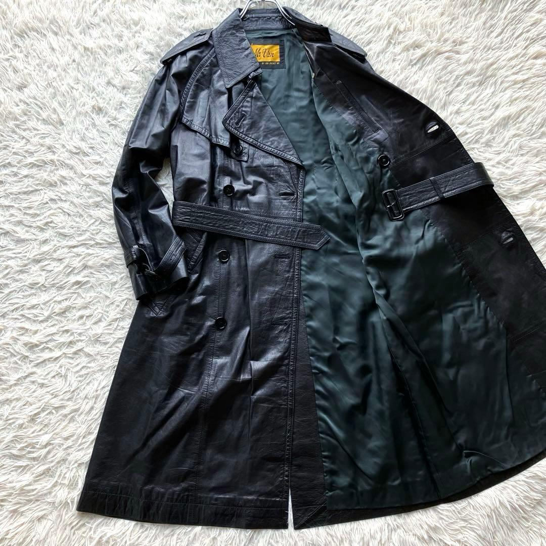 > ヴァンヂャケット【美品 光沢カウレザー 超ロング】VAN JACKET レザートレンチコート ブラック 黒 牛革 ベルト 本革 マキシ丈 ベルテッド