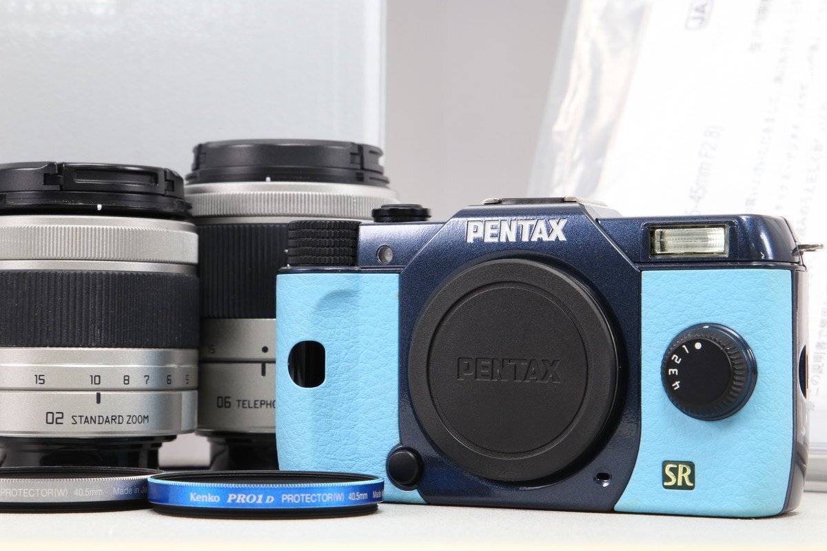 > [美品|動作保証] PENTAX Q7 ダブルズームキット アクアxミッドナイト [レンズプロテクター 追加付属]
