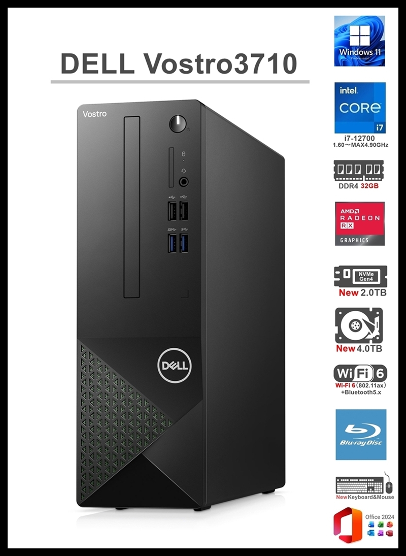 > ★DELL Vostro3710/i7-12700 12コア/RAM32GB/AMD RX550 4GB/新品NVMe SSD 2TB/新品HDD 4TB/Wi-Fi6E/Blu-ray/USB3.2/Win11Pro/Office2024★