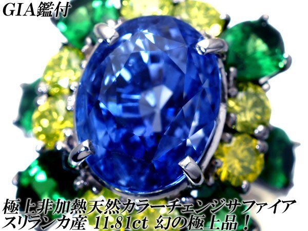 - 1円~【ジュエリー極】GIA鑑 超極上品 天然非加熱カラーチェンジサファイア11.81ct&ダイヤ&GG 超高級K18WGリング h8277vxxgl【送料無料】