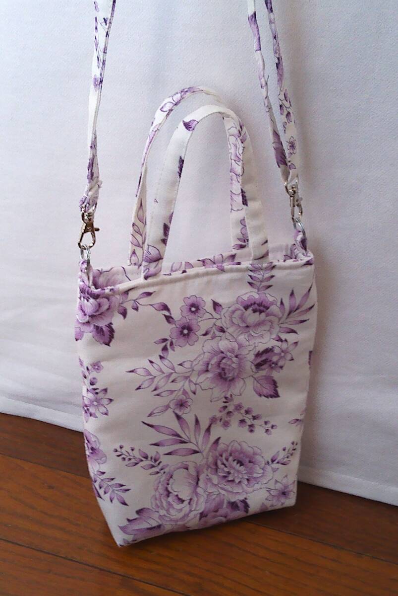 - ★ミニバック・ショルダー★白地パープル大花小花