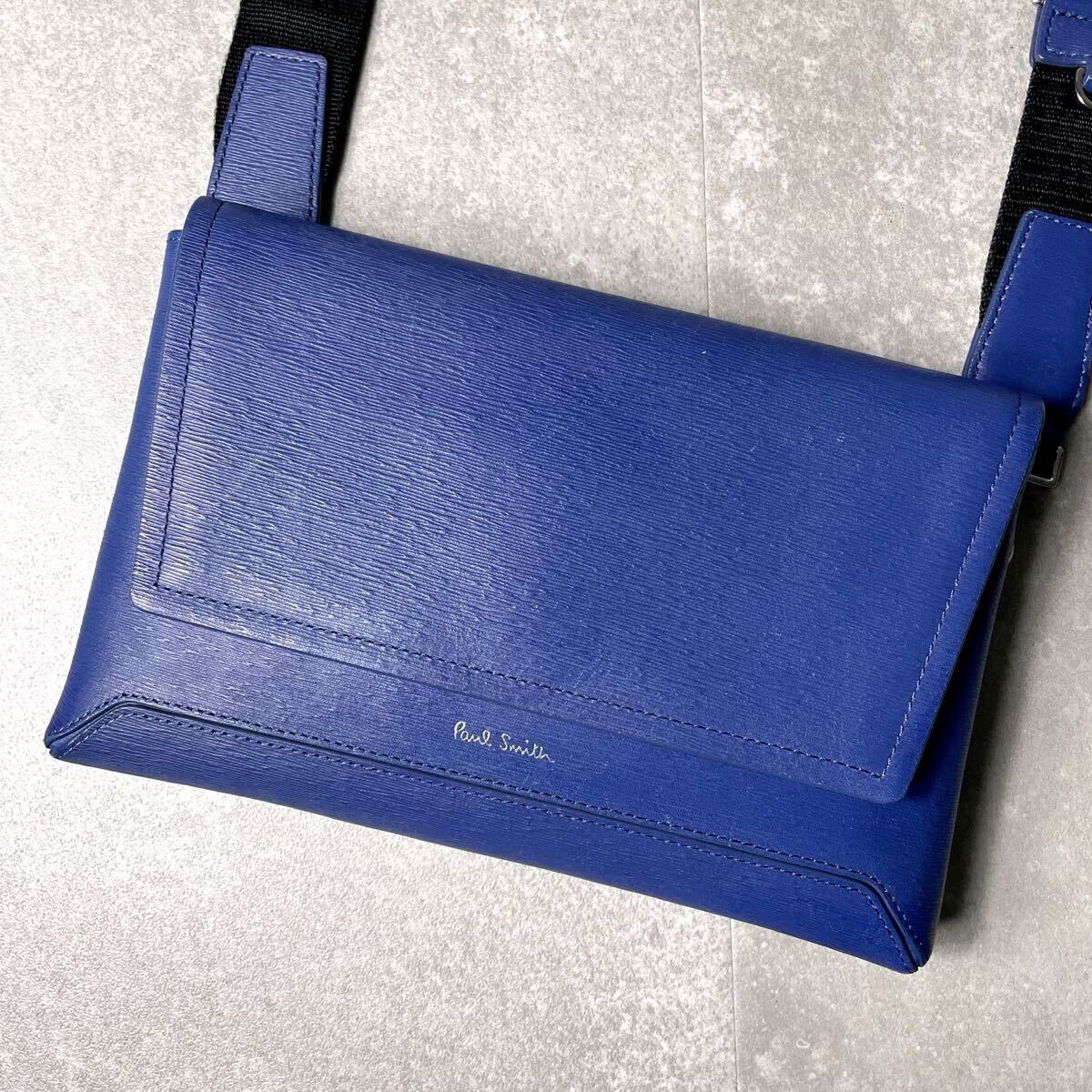 - 現行モデル/極美品◎ Paul Smith ポールスミス メンズ マルチストライプ ショルダーバッグ クラッチ 本革 レザー 黒 メンズ ブルー