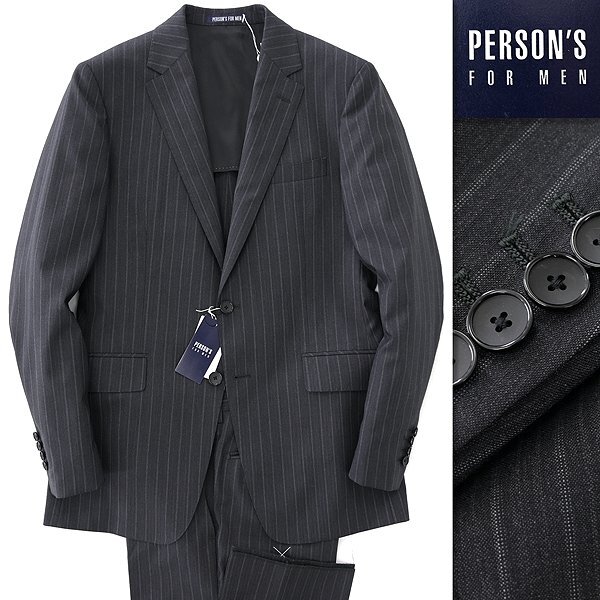 > 新品 パーソンズフォーメン 春夏 ストレッチ ストライプ スーツ YA5(細身M) 濃灰 【J56208】 トロピカル セットアップ サマー グレー