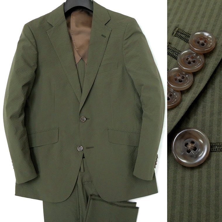 - 新品 ドールオム 阪急メンズ シアサッカー ストライプ スーツ A5(M) 【J58754】 D'or Homme 春夏 メンズ シングル ノータック ストレッチ