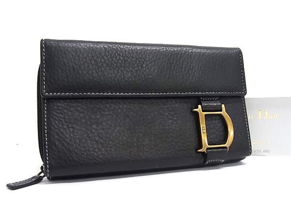 > 1円 ■美品■ ChristianDior クリスチャンディオール レザー 二つ折り 財布 ウォレット 小銭入れ 札入れ カード入れ ブラック系 FZ1025