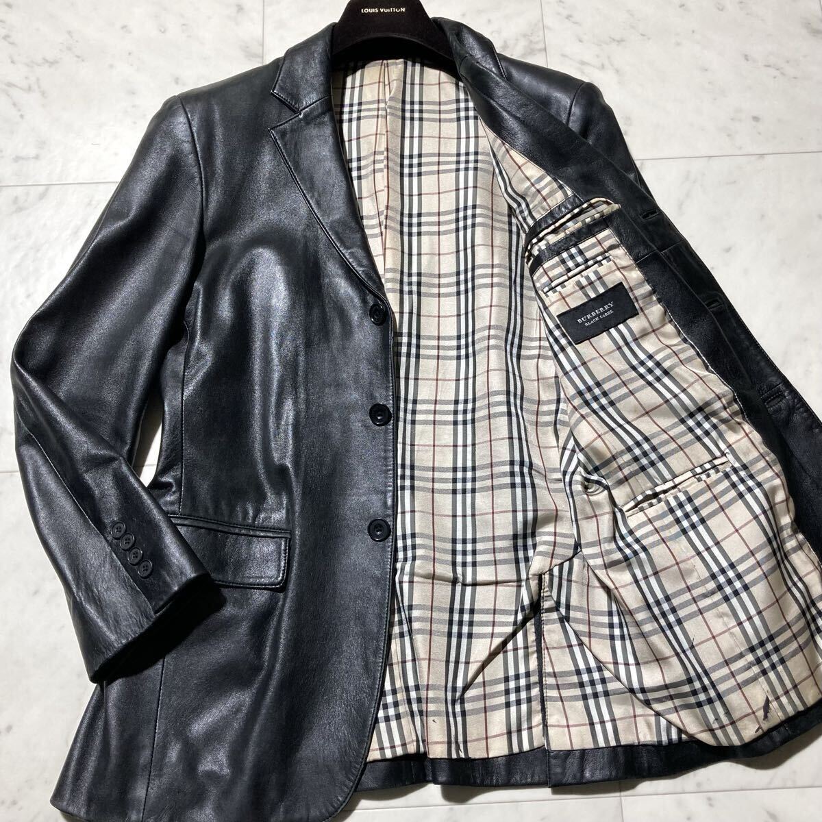 > バーバリーブラックレーベル【驚愕の柔らか羊革!!!】BURBERRY BLACK LABEL ラムレザージャケット テーラード ノバチェック ブラック 黒