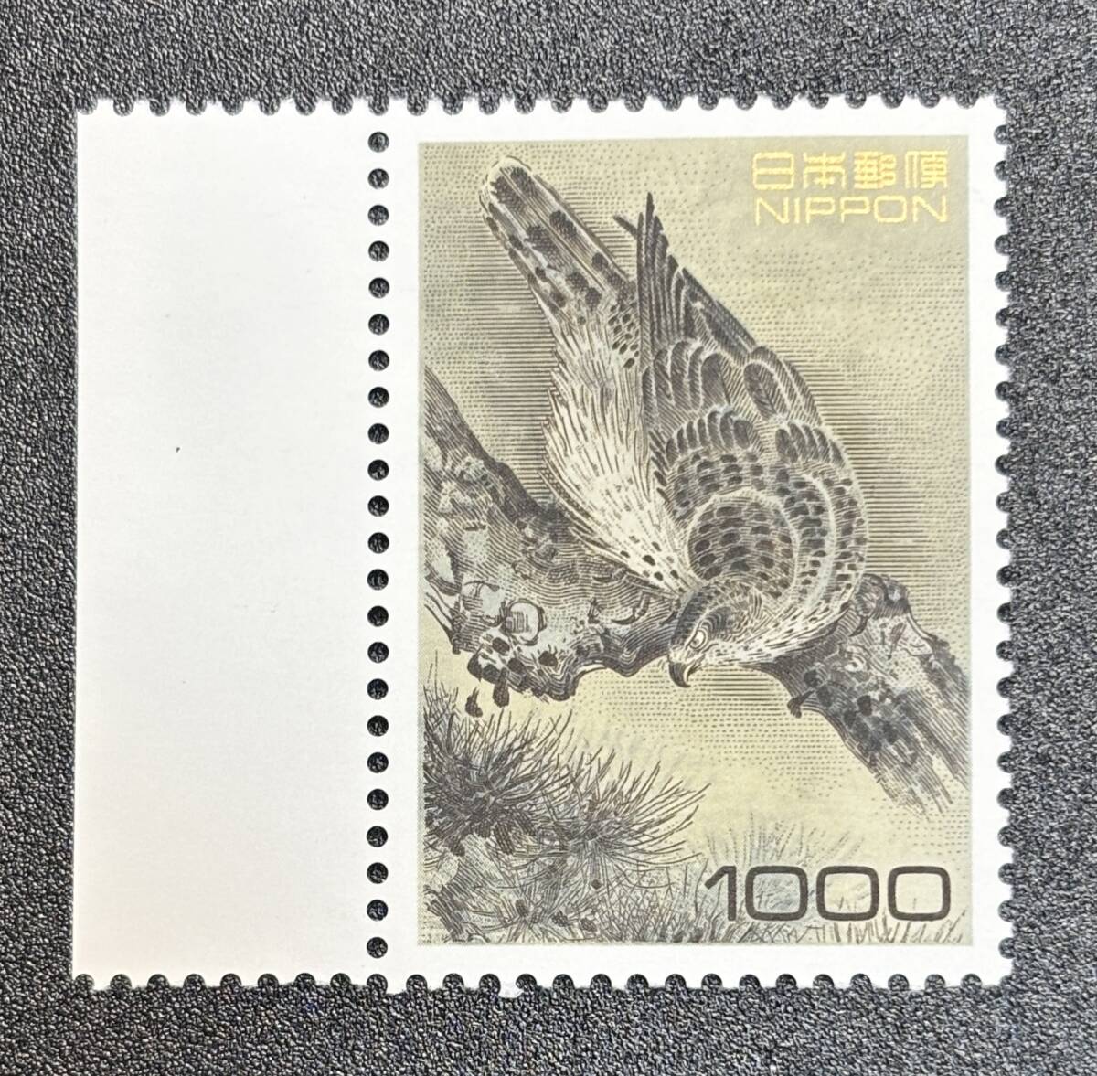 - 平成切手 日本の自然 【松鷹図】1000円 耳紙付 未使用 NH美品 まとめてお取引可
