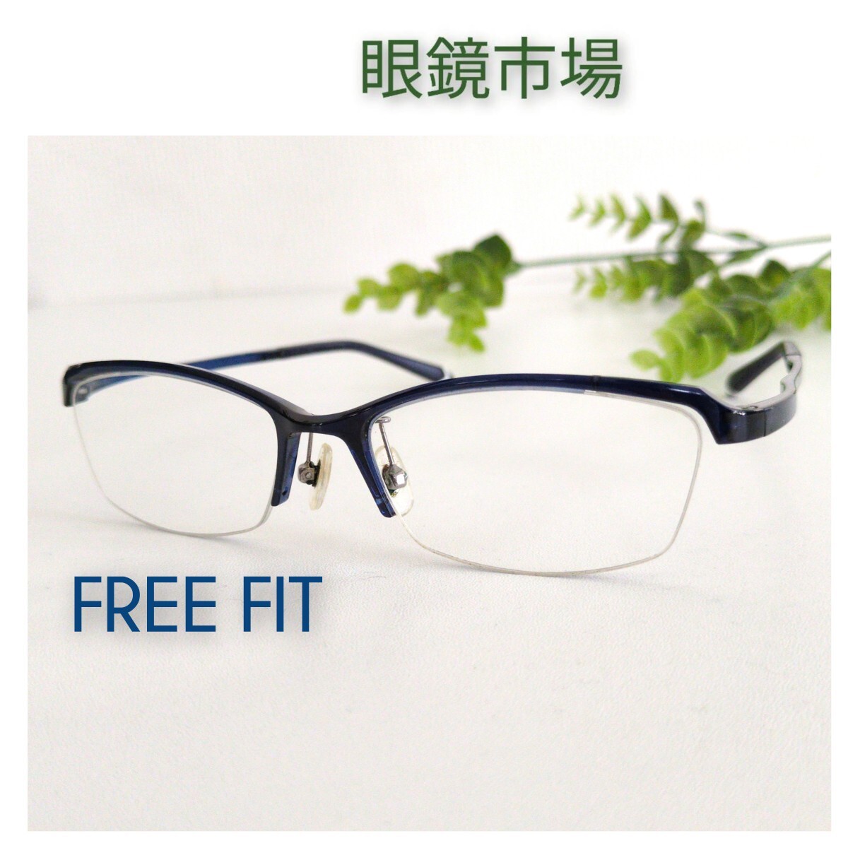 - 眼鏡市場 FREE FIT フリーフィット 眼鏡 メガネ ハーフリム ネイビー ナイロール スクエア ユニセックス ビジネス ブルー ブラック 軽量