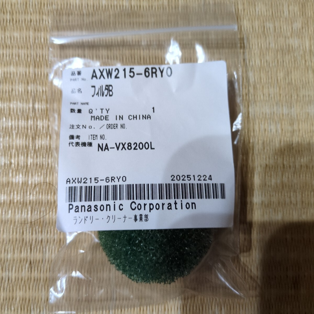 - 【新品】Panasonic パナソニック AXW215-6RYO 洗濯機 フィルターB 風呂水用