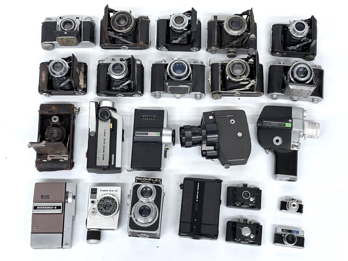 - 1円~/Canon/FUJICA/RICOH/etc.../二眼レフ/蛇腹カメラ/8mmカメラ/etc.../23点/まとめ/中古/アンティーク/レトロ/ジャンク/X045