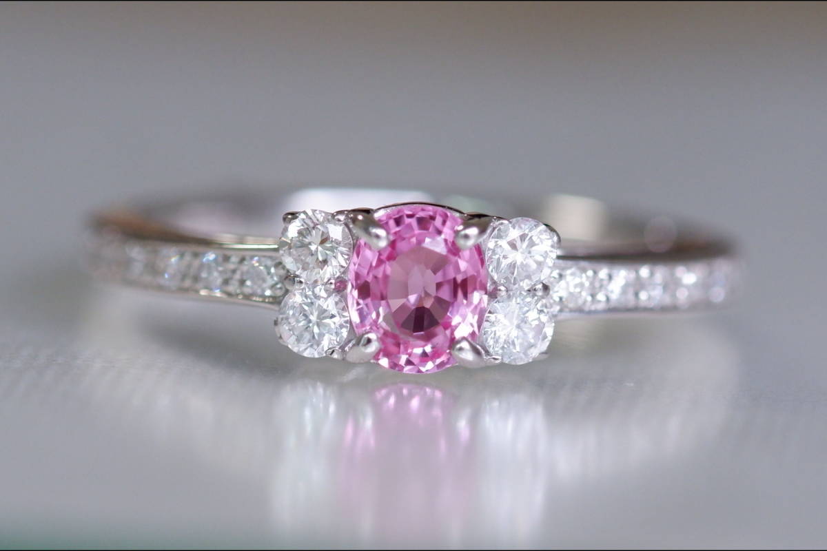 - Pt900 ピンクサファイア 0.405ct ダイヤモンド 0.25ct リング 11号 プラチナ サファイア サファイヤ