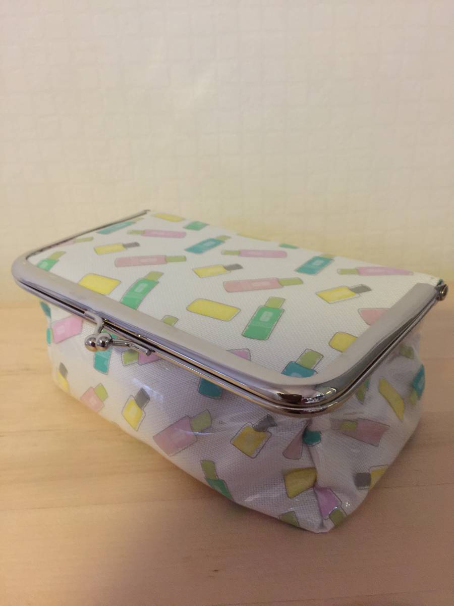 - クリニーク☆ポーチ☆基本の3ステップ絵柄☆未使用☆がま口風ふたが閉まります