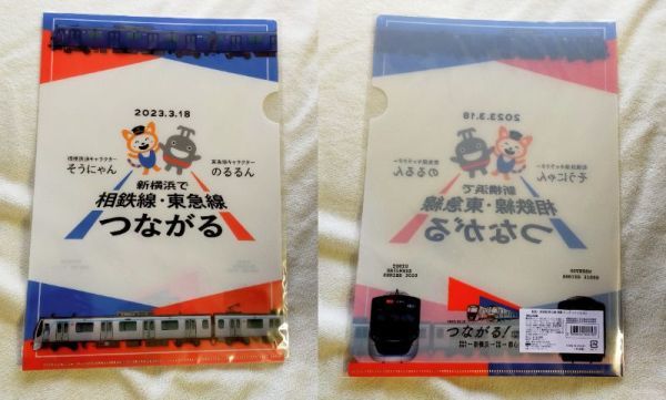 - ◆相鉄・東急◆相鉄・東急新横浜線 開業記念 A4クリアファイル 02 相鉄20000系 東急3020系 そうにゃん&のるるん