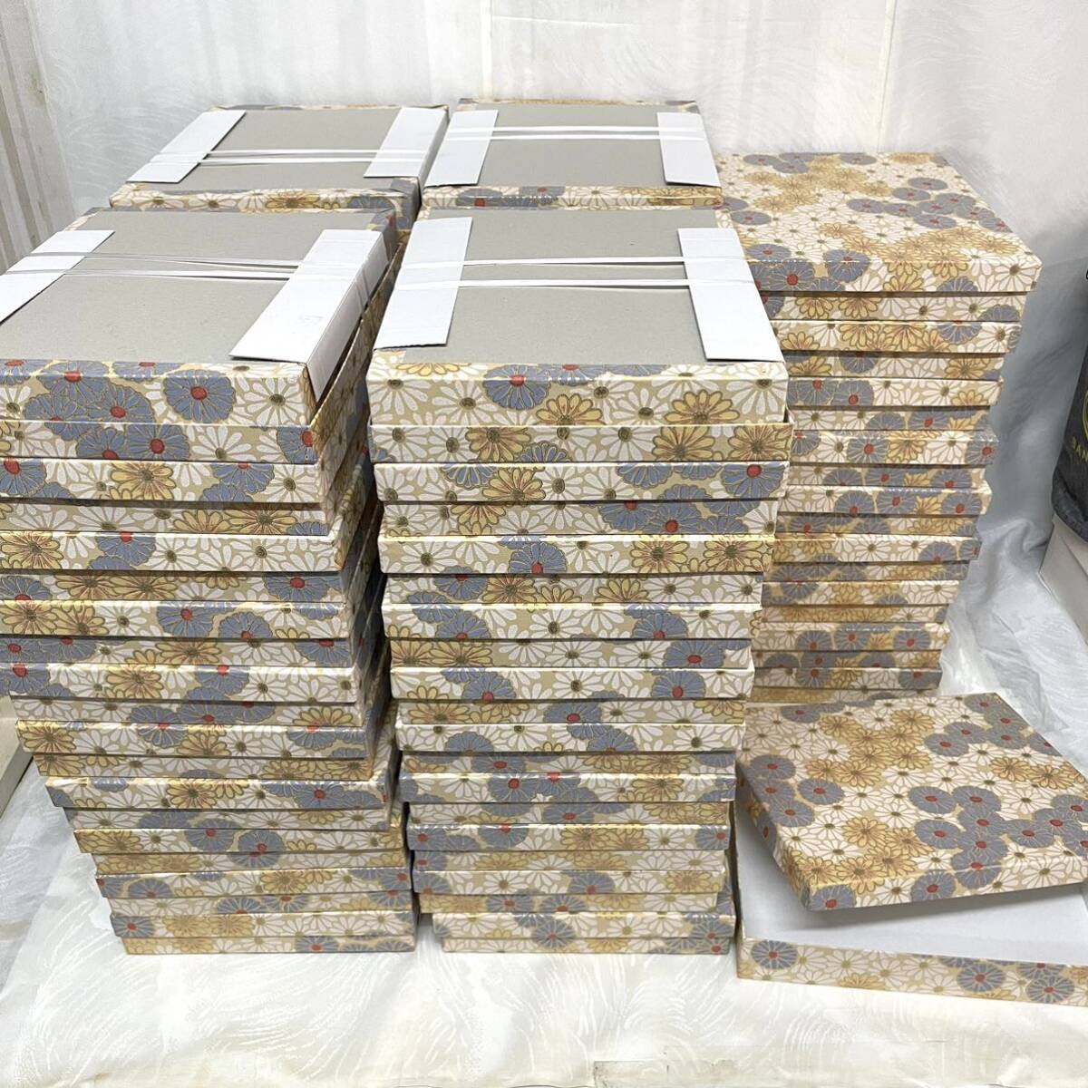 - 未使用保管品【化粧箱】菓子箱 50個 まとめ 和菓子 花柄/菊 店舗用品 ギフト ラッピング用品 ギフトボックス