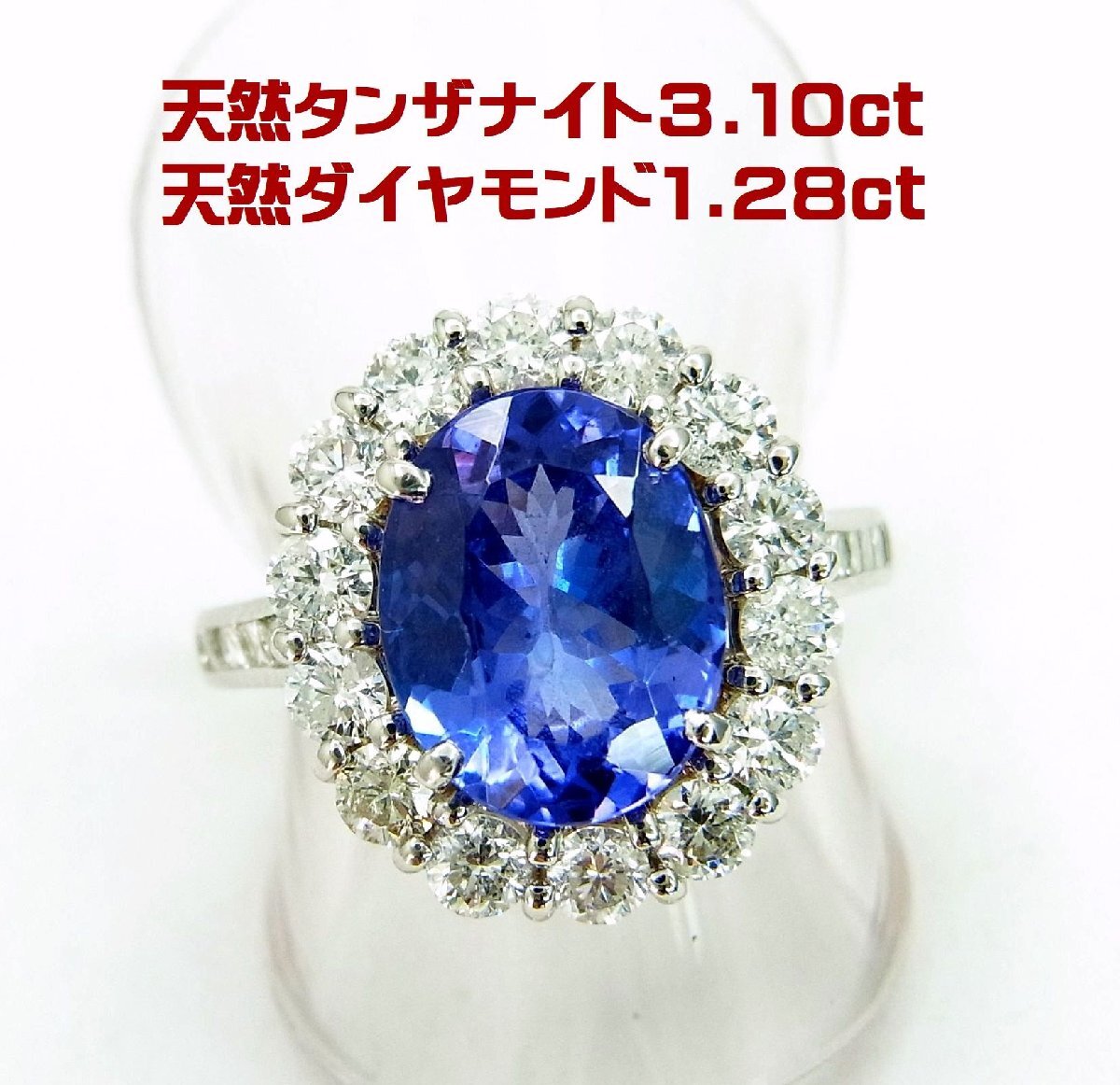 > お買い得 3.10ct 天然タンザナイト 天然ダイヤラージメレ1.28ct取巻 プラチナ製リング 卸価格 商品動画 送料込み
