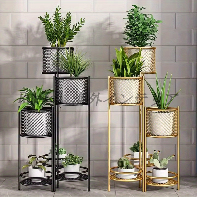 - プランター スタンド 4段 シンプル モダン おしゃれ かわいい インテリア 花台 フラワー ラック 折り畳み 収納 鉢植え ゴールド ブラック