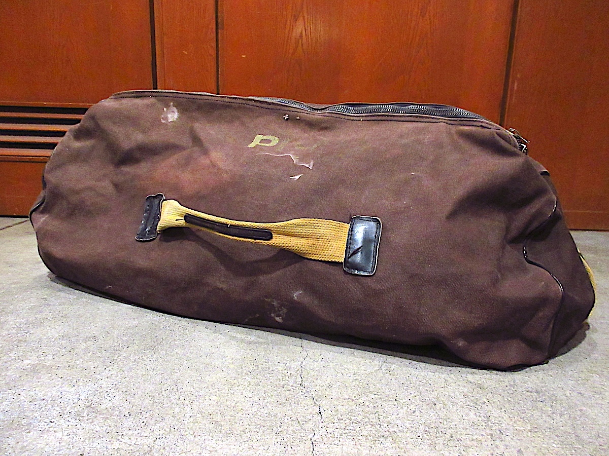 > ビンテージ50's60's●ステンシル入りキャンバスダッフルバッグダークブラウン●250828n7-bag-shd鞄収納ファッション雑貨