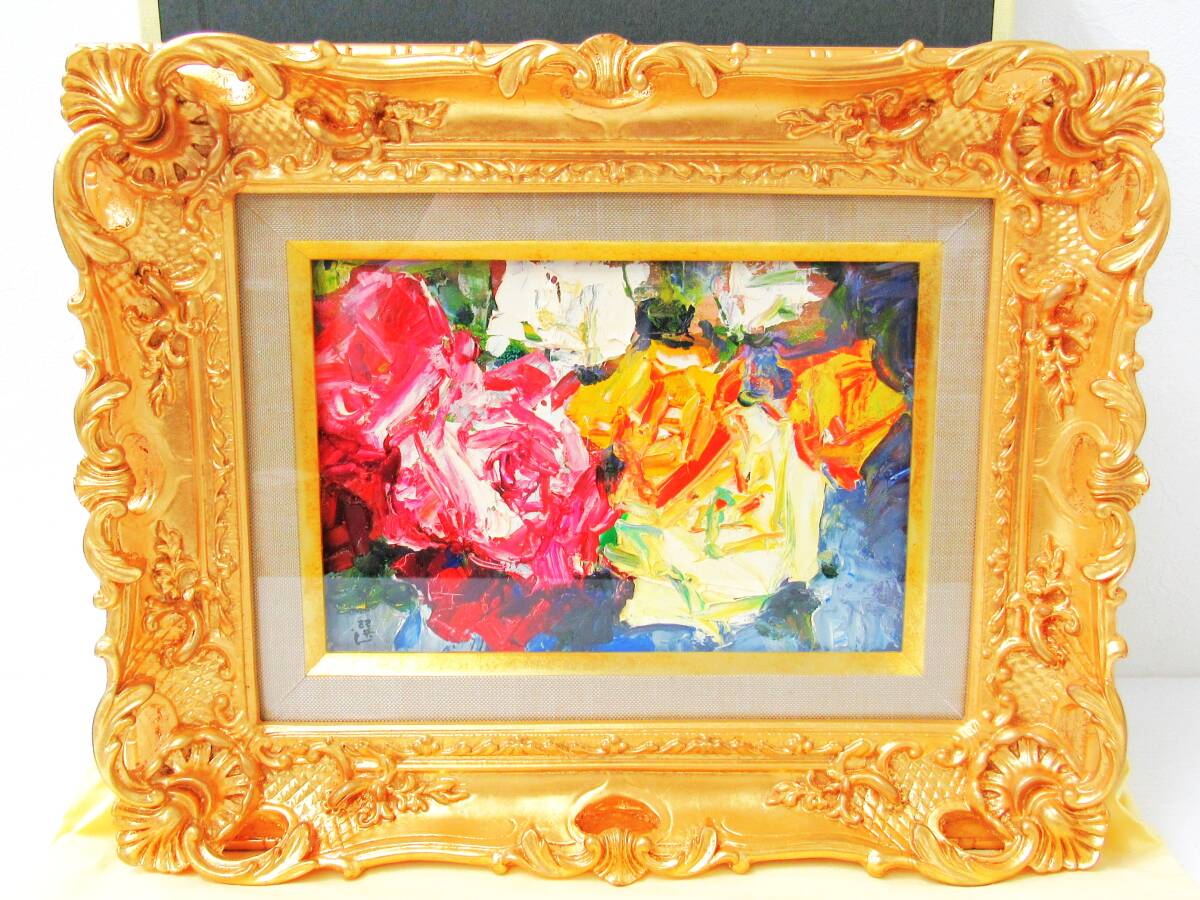 > 模写 村上選 『バラ』 サインあり 油彩 SMサイズ 額縁付き 絵画 油絵 静止画 芸術 インテリア コレクション HG1128