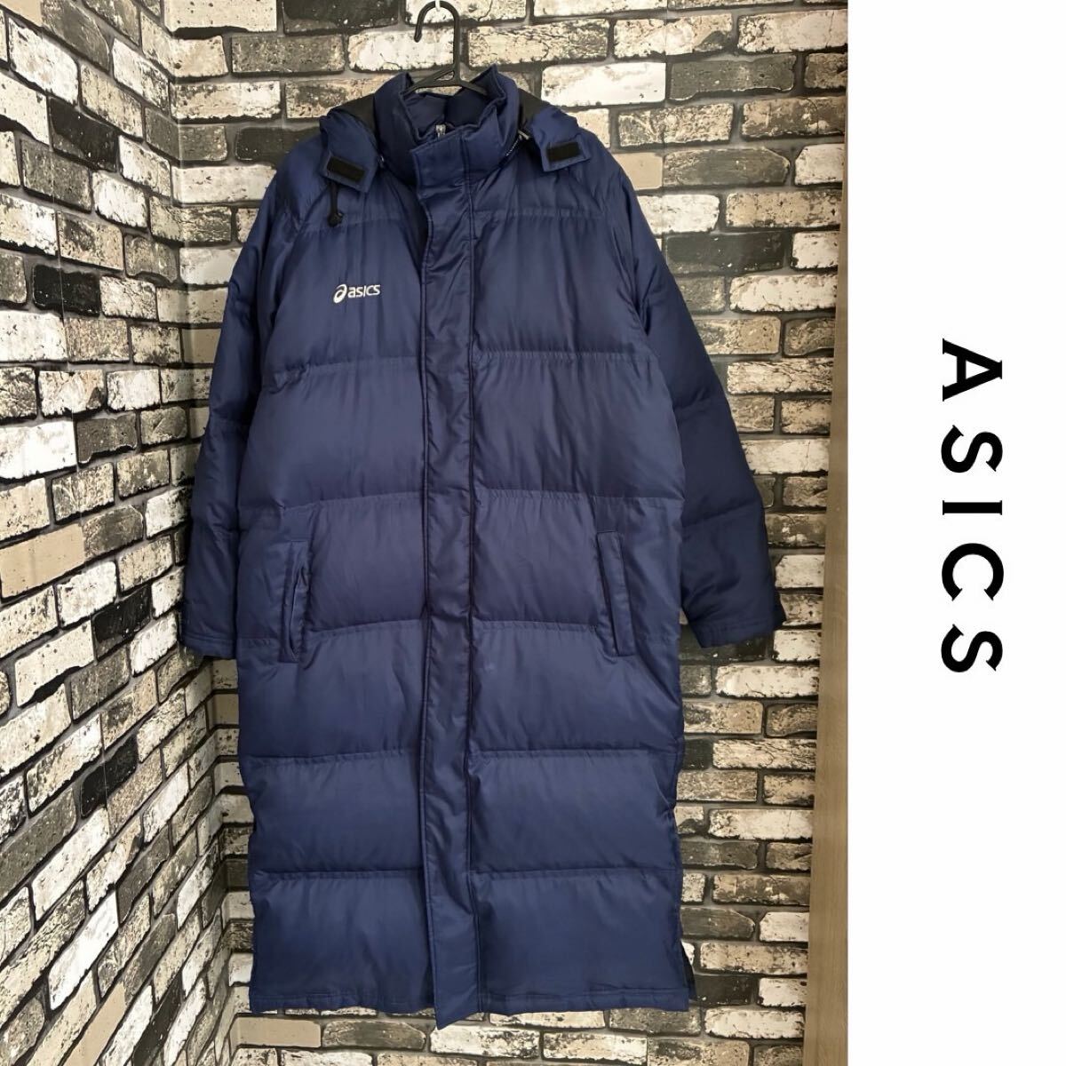- アシックス ASICS ダウン ベンチコート ロング Lサイズ ネイビー コート Lサイズ