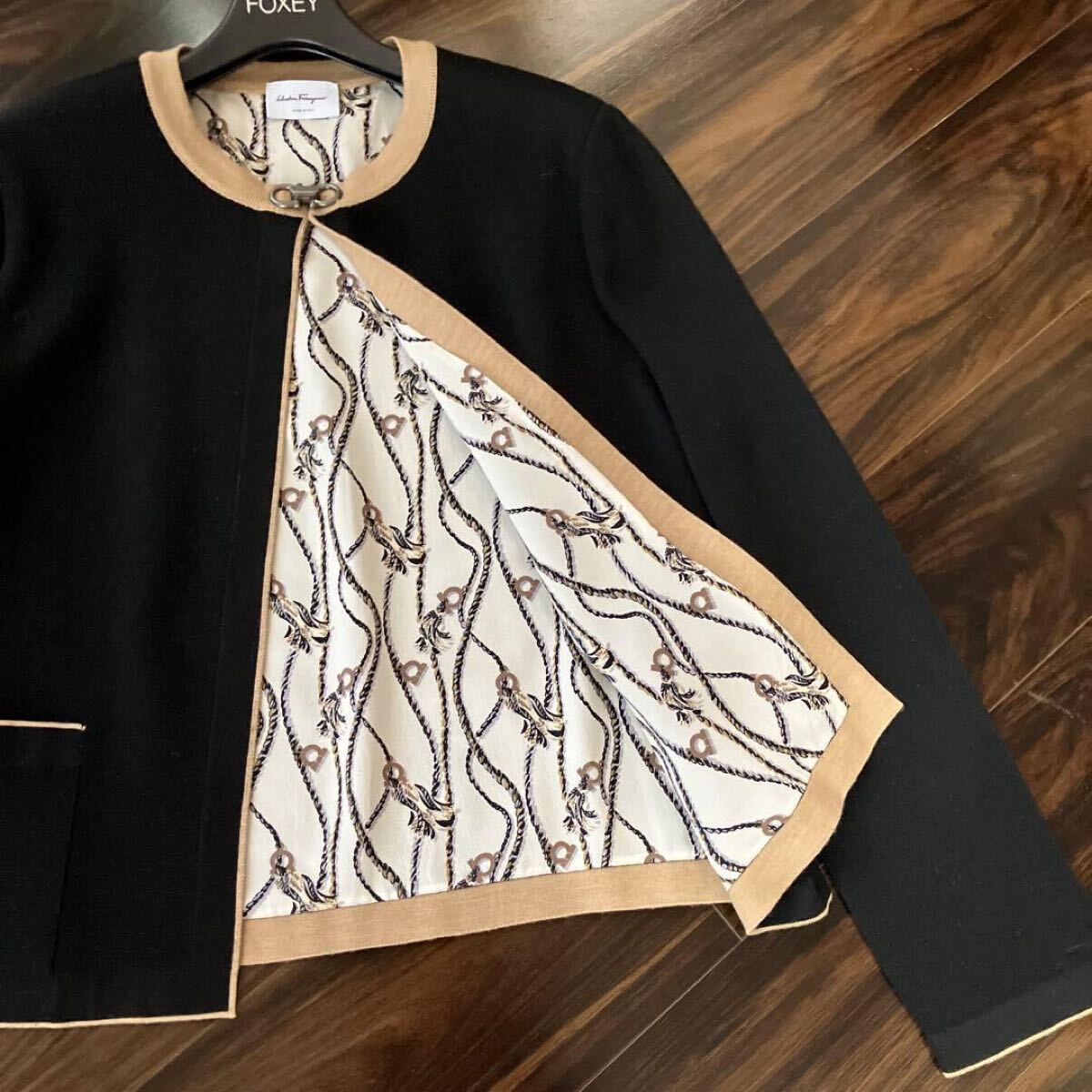 - 極美品 サルバトーレフェラガモ Salvatore Ferragamoウールシルクカーディガン ノーカラージャケット ニットカーディガン ウール