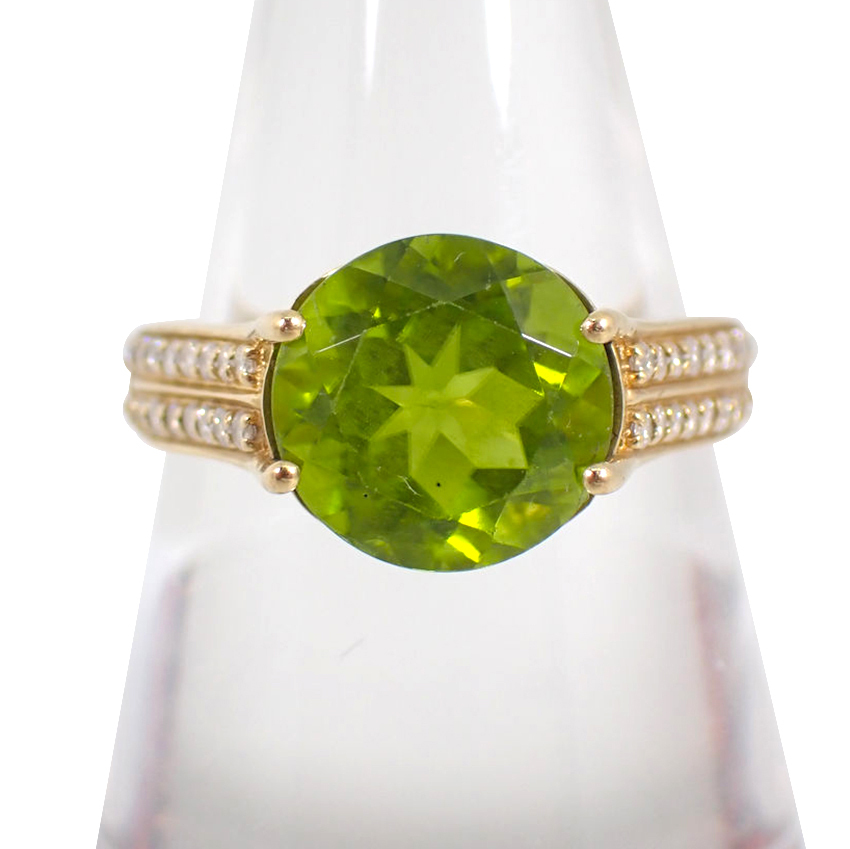 - 【中古】K18 ペリドット/ダイヤモンド リング /14号/j136-21