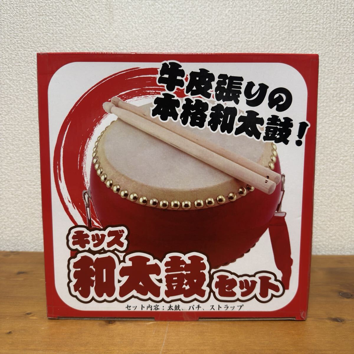 - キッズ 和太鼓 和太鼓セット 牛革張り仕様 太鼓とバチ 子供 牛皮張りの本格和太鼓