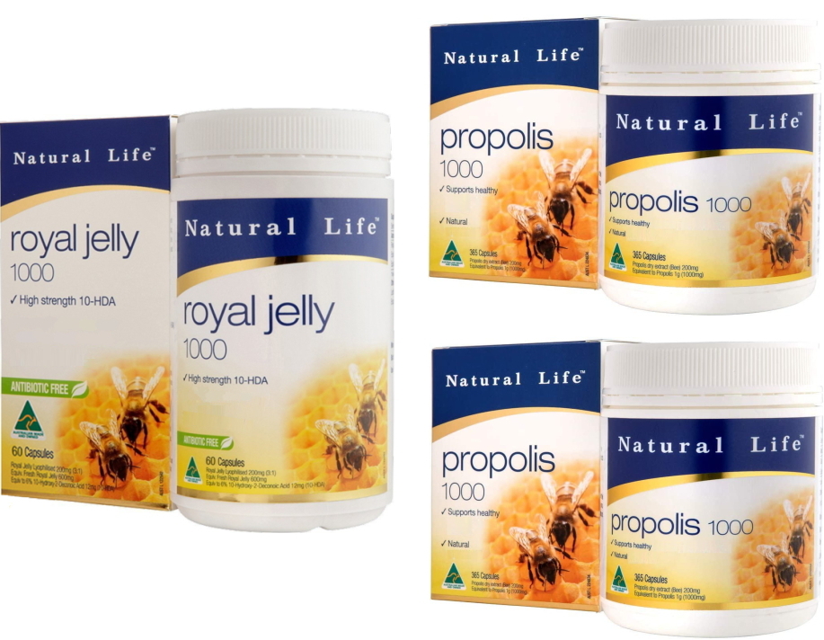 > ナチュラルライフ ローヤルゼリー 1000mg 365カプセルx1個 & プロポリス 1000mg 365カプセルx2個 合計3個セット オーストラリア産 10HDA