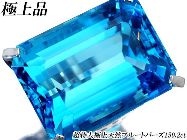 - 1円~【ジュエリー極】超極上品!極上色調!超特大極上天然ブルートパーズ150.2ct&ダイヤ1.177ct 超高級Pt900リング h8237mgm【送料無料】