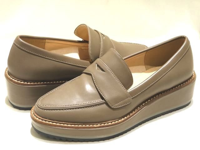 - 美品 EVOL 厚底プラットフォーム コインローファー ◇ 23.0 グレージュ系 レディース シューズ 靴 イーボル パンプス ▼8C