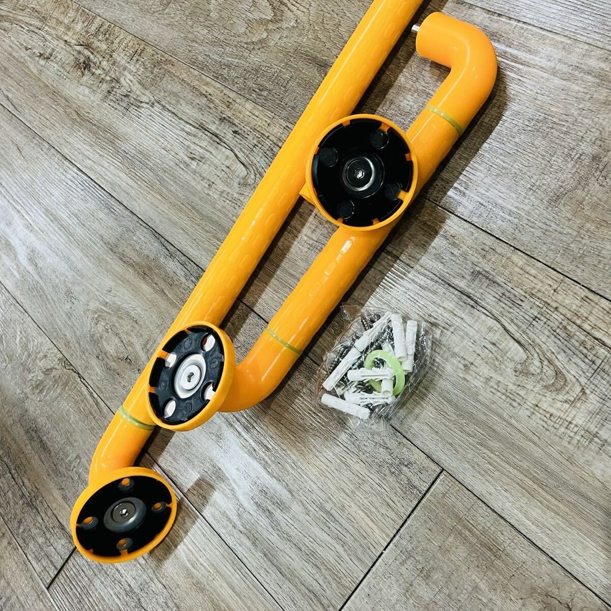 - 3U28 必見! 新品 未使用 手すり 手摺 階段 玄関 介護 歩行補助 階段 トイレ 浴室 L字型 オレンジ 夜光リング