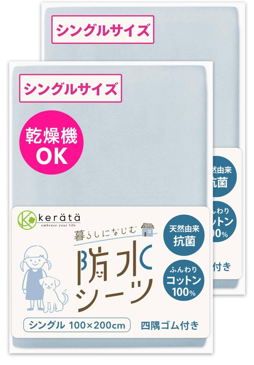 > (ケラッタ) 防水シーツ おねしょシーツ 丸洗い&乾燥機OK 綿100% 抗菌 防ダニ シート ベビーシーツ [k ブルー×ブルf