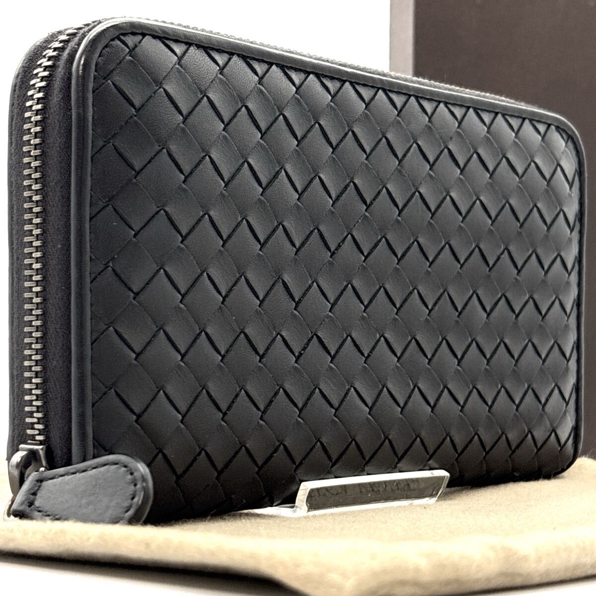 - 極美品◆BOTTEGA VENETA ボッテガヴェネタ イントレチャート ラウンドファスナー 長財布 ロングウォレット ブラック