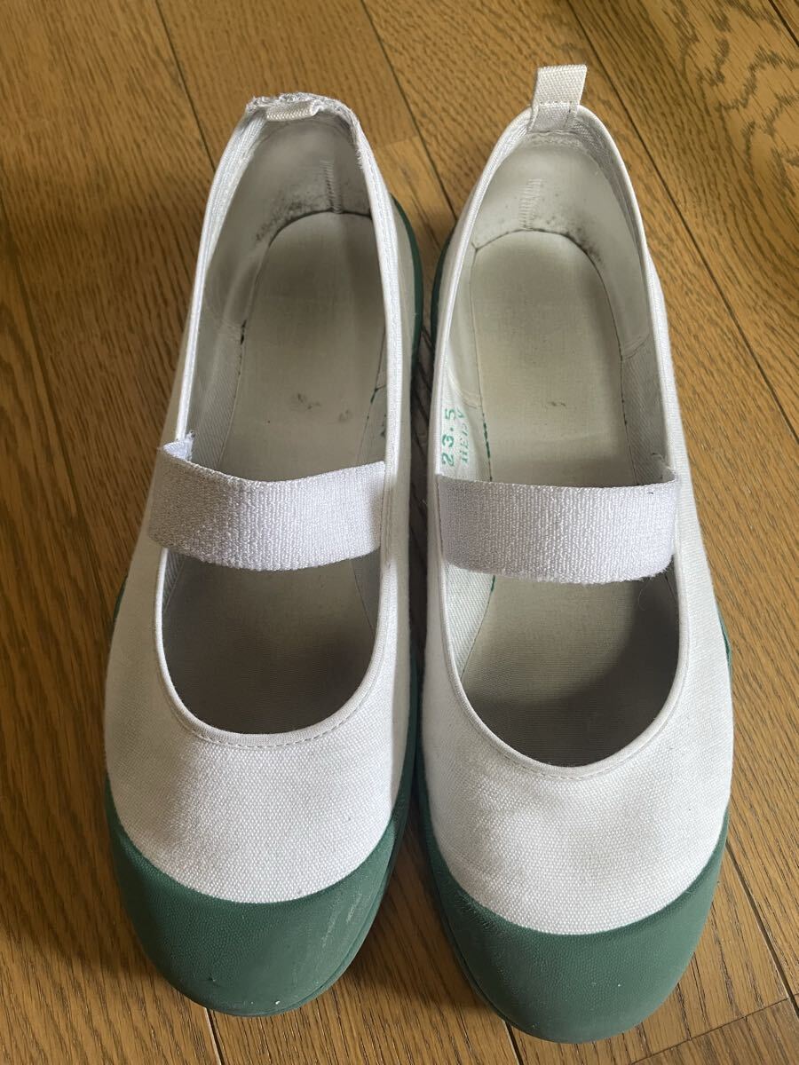 - 中学生 女の子 上履き スクールシューズ バレエシューズ 白 緑 23.5cm 中古