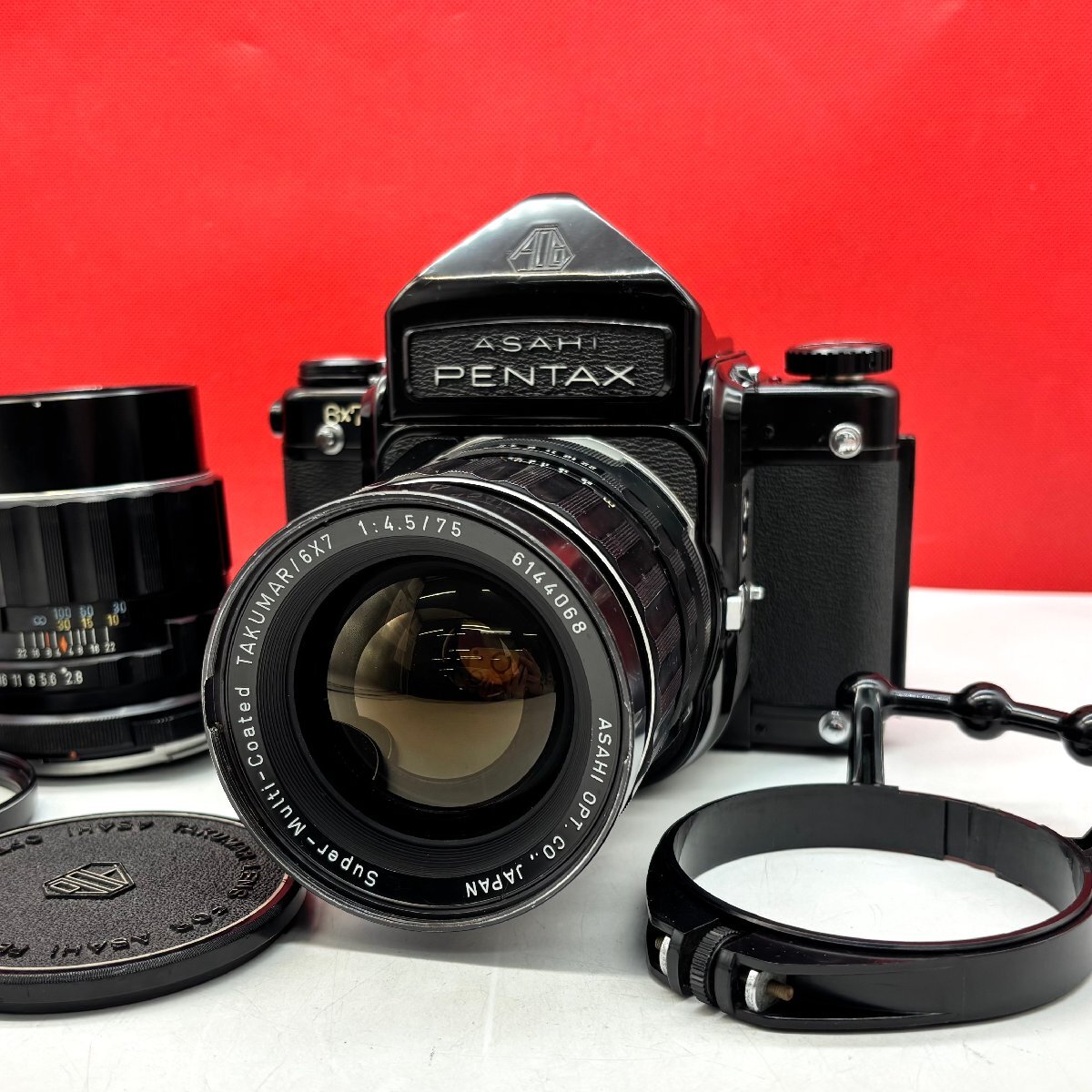 - N543 PENTAX 6x7 Super-Multi-Coated TAKUMAR/6X7 F4.5 75mm / F2.8 150mm アタッシュケース付 中判フィルムカメラ 動作品 ペンタックス