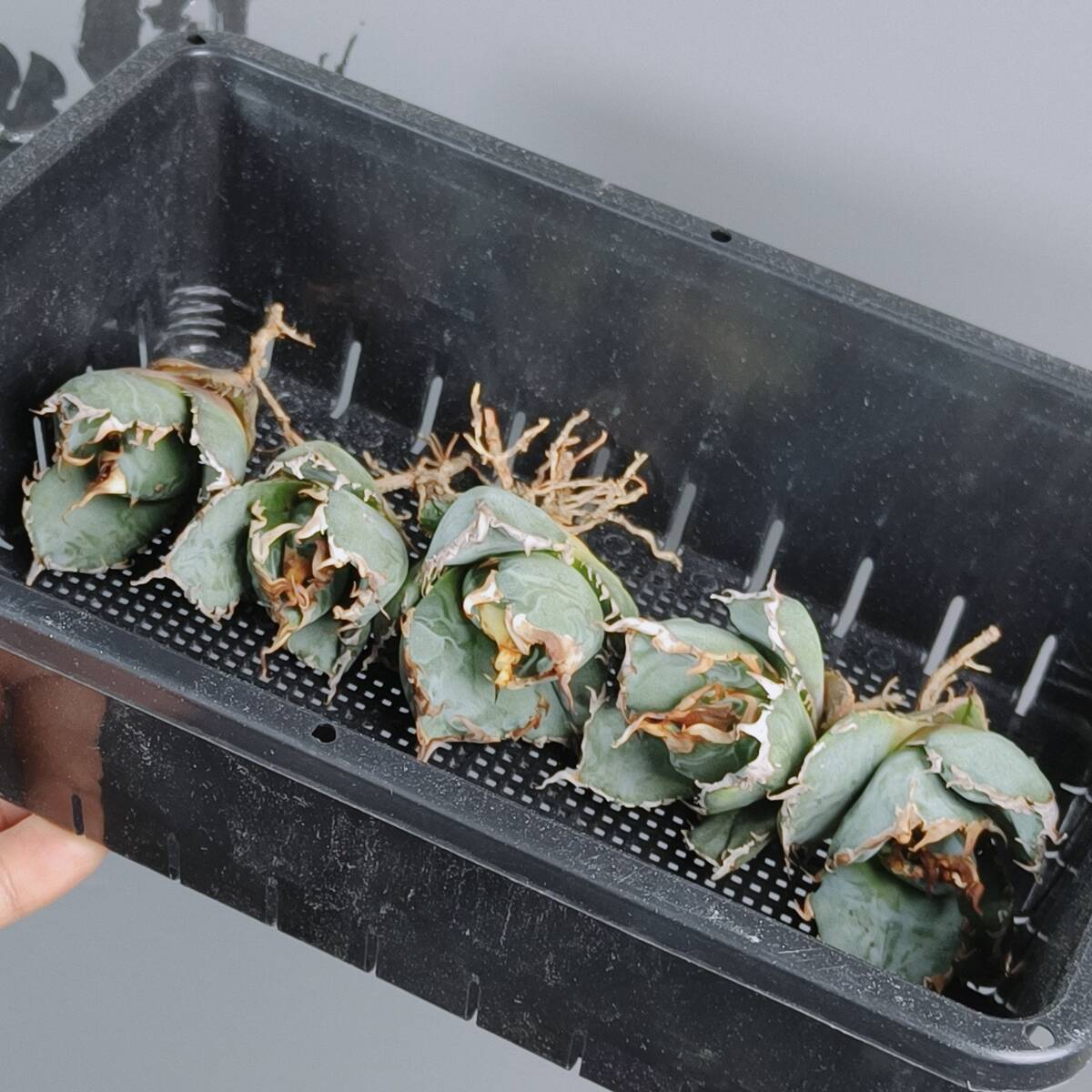 - 【龍園觀】No.B49 特選 アガベ チタノタ "白鯨" 極太棘 包葉 ☆強鋸歯長鋸歯タイプ☆ 子株 5株