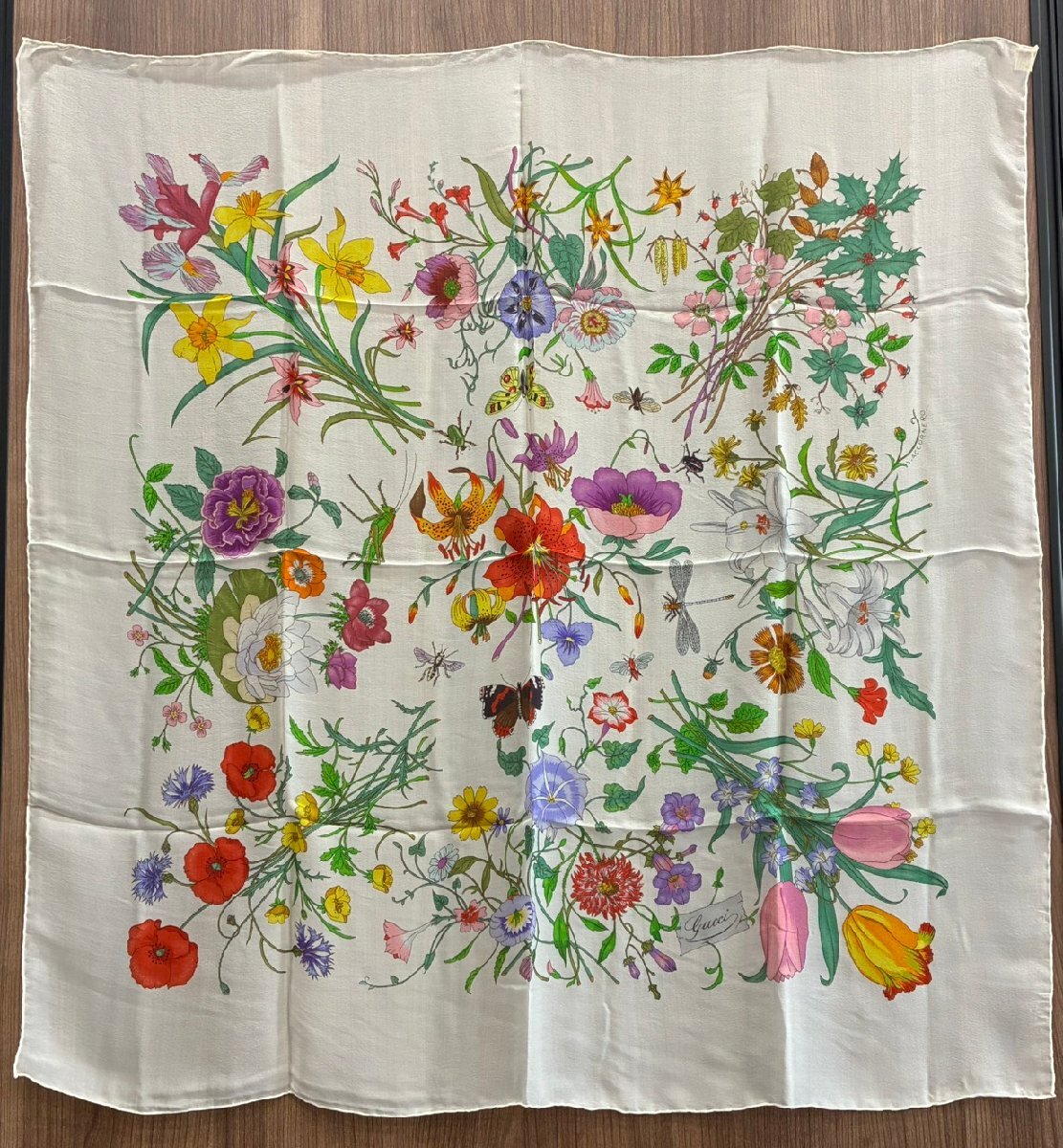 > ▽▼GUCCI グッチ 花柄 フローラ スカーフ 大判 シルク 花柄 総柄 絹100% シルク100%▼▽