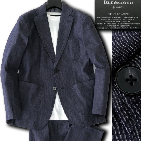 > 新品 3.8万 ディレツィオーネ デニムライク セットアップ スーツ M 紺 【822840_30_M】 26SS Direzione ストレッチ ウォッシャブル メンズ