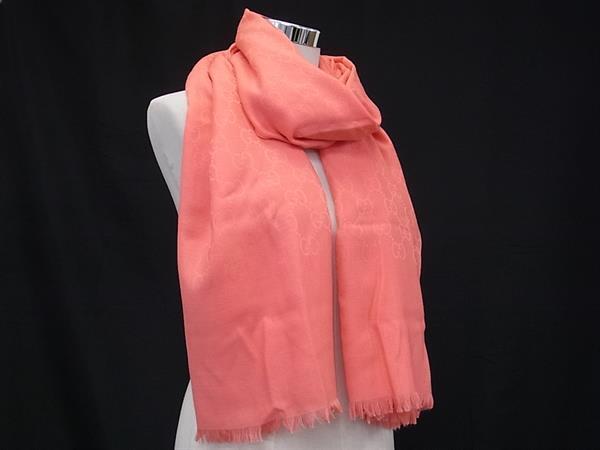 > 1円 ■新品同様■ GUCCI グッチ GG柄 ウール×シルク フリンジ マフラー ストール 防寒具 レディース ピンク系 FV9108