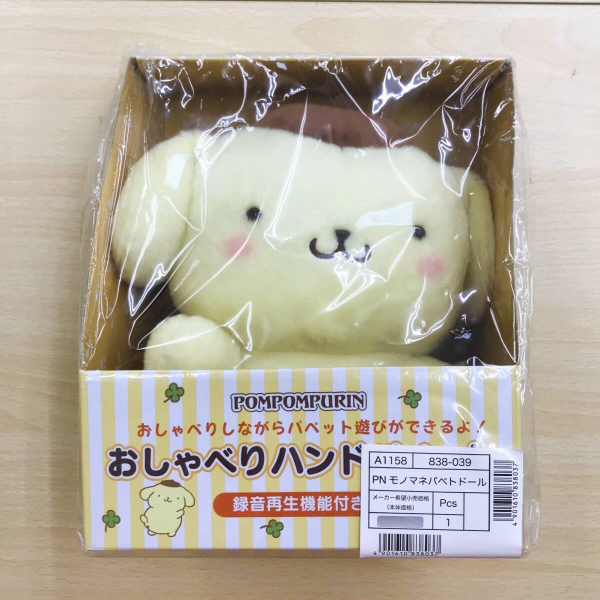 - 105 B-845/【未開封】サンリオ ポムポムプリン おしゃべりハンドパペット ものまねパペットドール 録音再生機能付き ぬいぐるみ