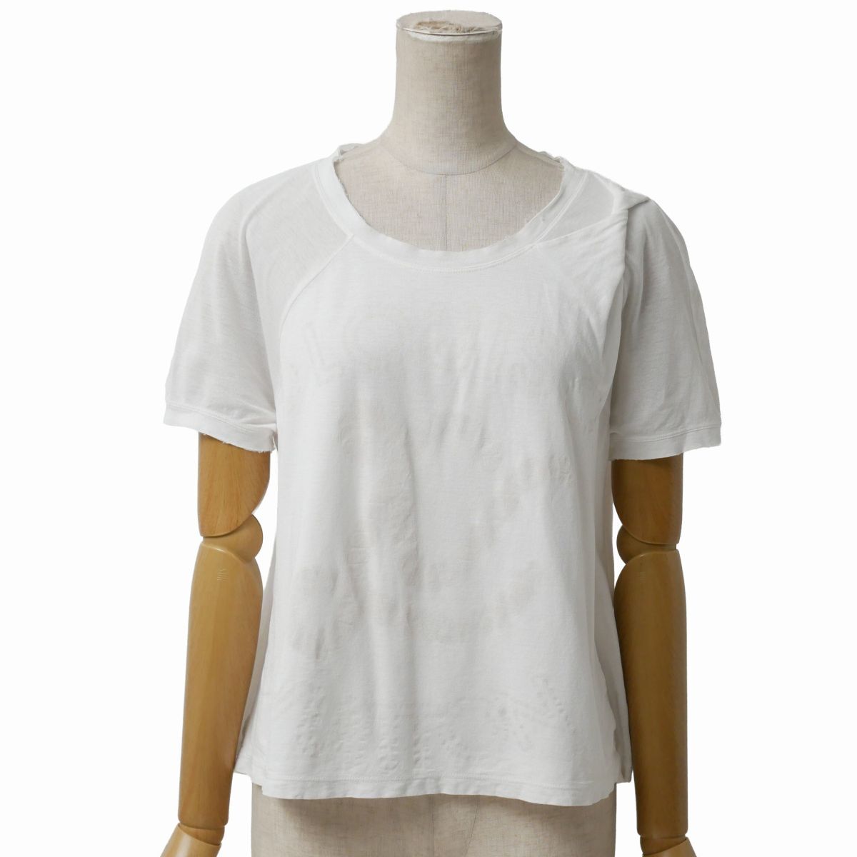 > MI8649☆ルイヴィトン LOUIS VUITTON ビッグロゴプリント ラグランスリーブTシャツ カットソー カットオフ 薄手 コットン ホワイト M