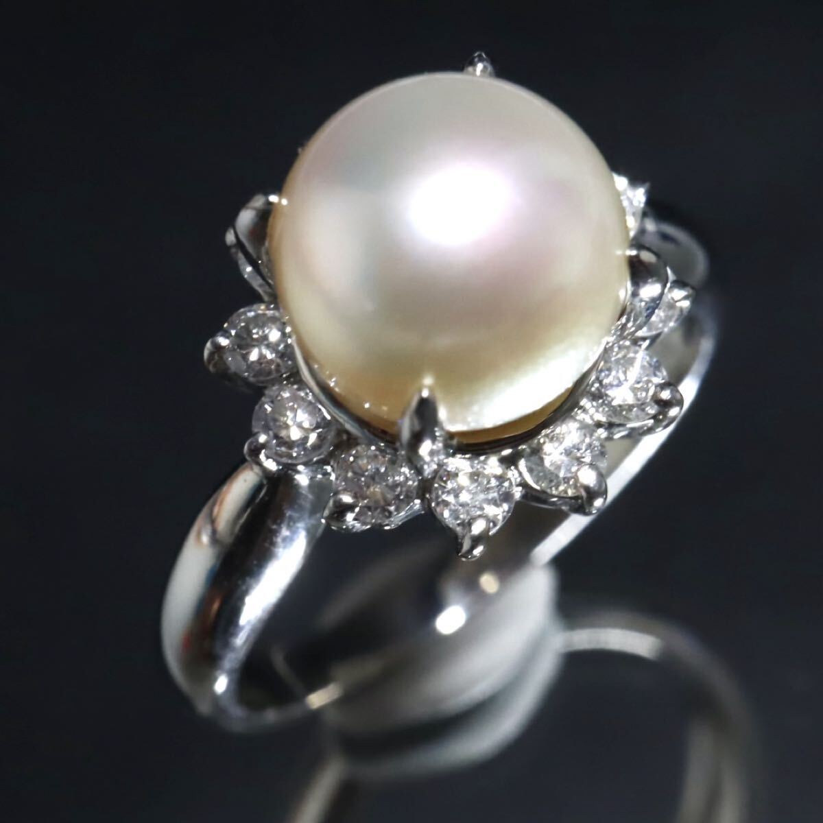 - 【ジュエリーマキ】Pt850!!■アコヤ本真珠/天然ダイヤモンドリング■A 約6.2g 約11.5号 #11.5 パール pearl diamond 指輪 ring EE0/EE5 U4