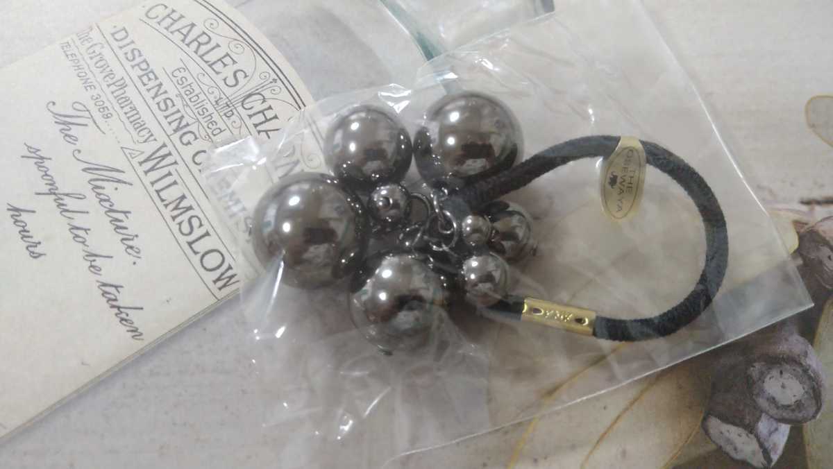 - □未開封□メタリックグレー・丸ビジュー付きヘアゴム□